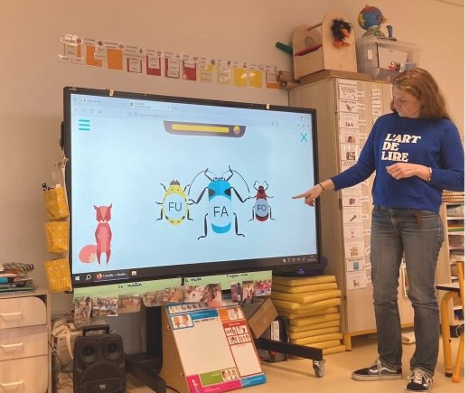 Ensuite, tous les après-midis, à l’accueil, pendant 20 minutes environ, nous faisons des jeux éducatifs (maths, lecture, phonologie) au TNI grâce à des sites de professeurs des écoles qui proposent gratuitement leurs jeux ou avec l’appli de Corneille. Cela permet d’aborder de nouvelles notions ou de réviser de manière ludique et motivante.