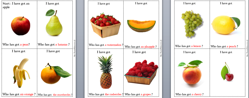 3) Les cartes « I have got … Who has got … ? » les fruits