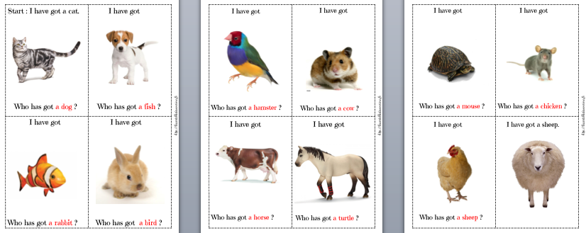 5) Les cartes « I have got … Who has got … ? » les animaux